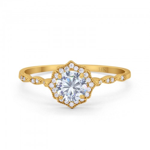 14K Yellow Gold Round Pave Simulated Cubic Zirconia Wedding Engagement Ring Size 7 14K Gold