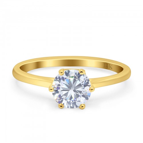 14K Yellow Gold Round Solitaire Accent Simulated CZ Wedding Engagement Ring Size 7 14K Gold
