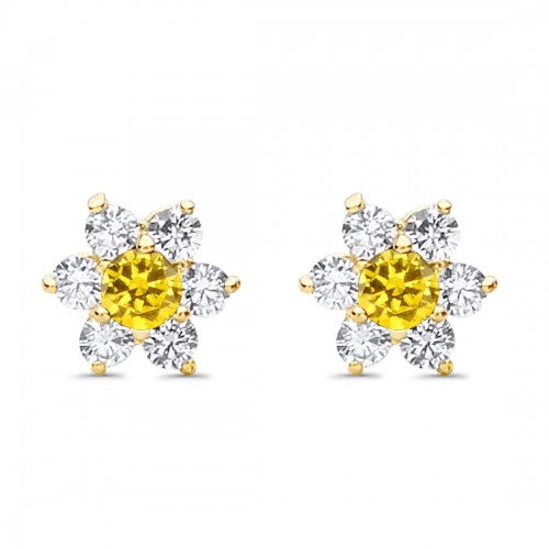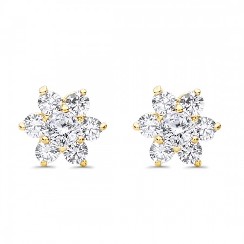 14K Yellow Gold Solid Arrow Love Studs Earring Cubic Zirconia Best Birthday Or Anniversary Gift