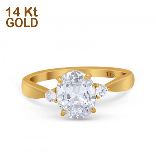 14K Yellow Gold Three Stone Oval Bridal Simulated CZ Wedding Engagement Ring Size 7 14K Gold