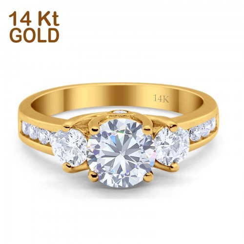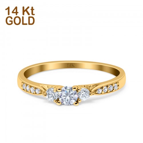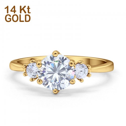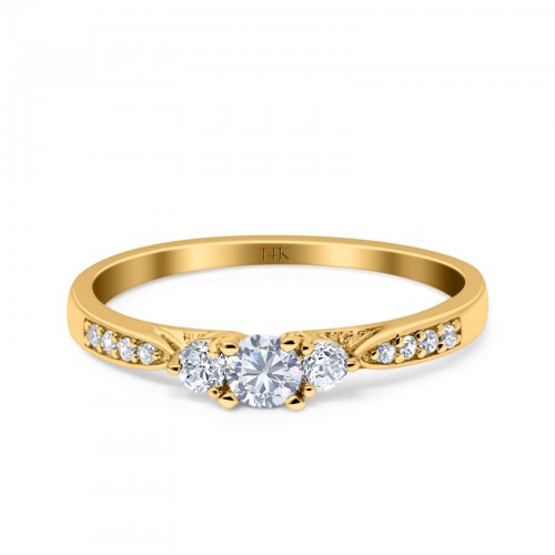 14K Yellow Gold Three Stone Wedding Engagement Bridal Ring Round Simulated CZ Size 7