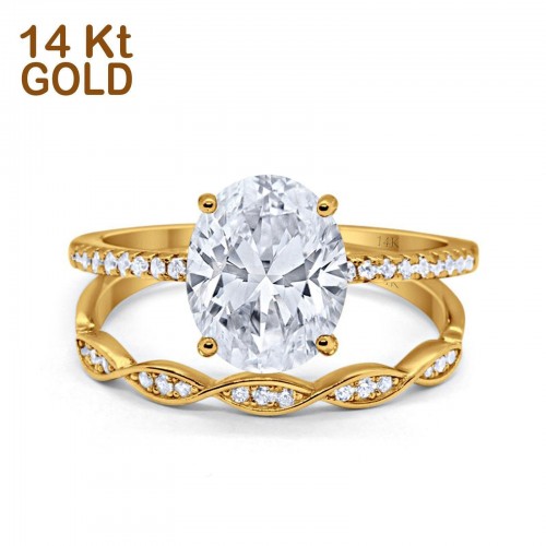 14K Yellow Gold Two Piece Oval Wedding Ring Bridal Set Band Engagement Simulated CZ Size-7