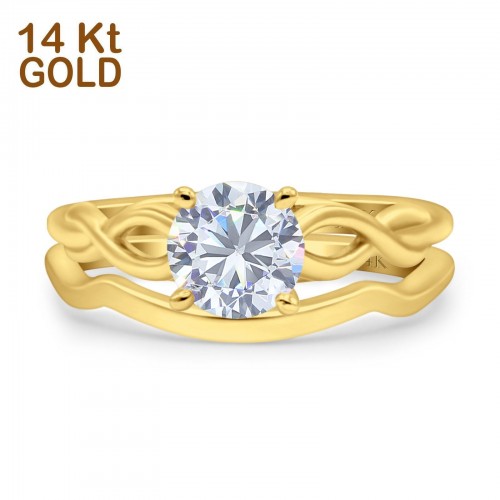 14K Yellow Gold Two Piece Round Bridal Set Ring Wedding Engagement Band Simulated CZ Size 7