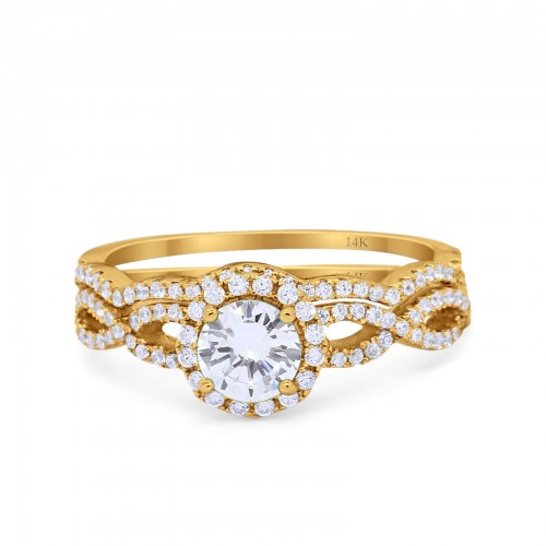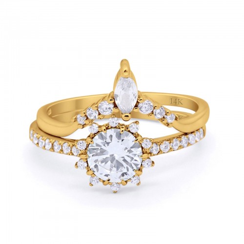 14K Yellow Gold Two Piece Halo Engagement Ring Round Simulated Cubic Zirconia Size-7