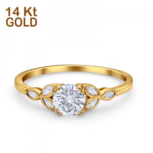 14K Yellow Gold Vintage Art Deco Round Simulated CZ Wedding Engagement Ring Size 7 14K Gold