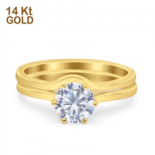 14K Yellow Gold Two Piece Round Wedding Ring Bridal Set Band Engagement Simulated CZ Size-7