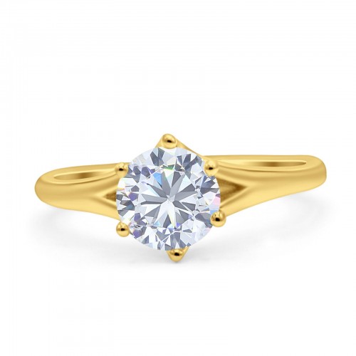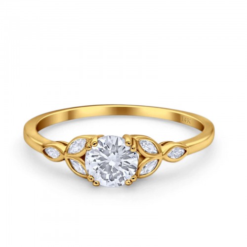 14K Yellow Gold Vintage Solitaire Round Simulated CZ Wedding Engagement Ring Size 7 14K Gold
