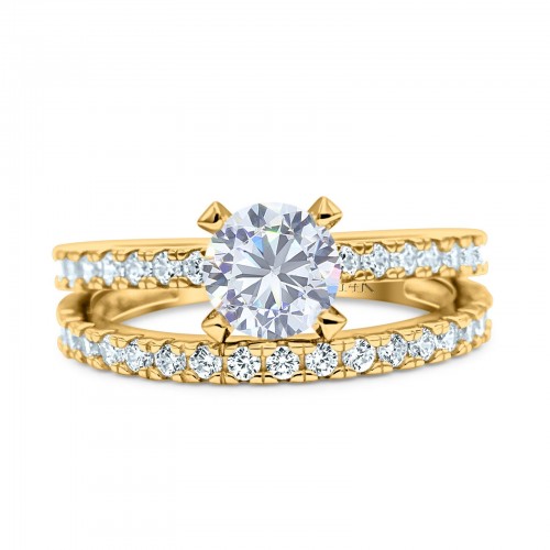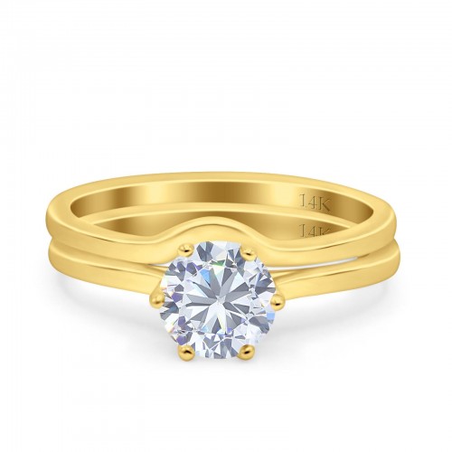 14K Yellow Gold Two Piece Round Wedding Ring Bridal Set Band Engagement Simulated CZ Size-7