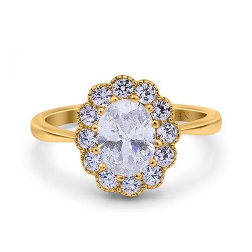 14K Yellow Gold Vintage Halo Oval Simulated CZ Wedding Engagement Ring Size 7 14K Gold