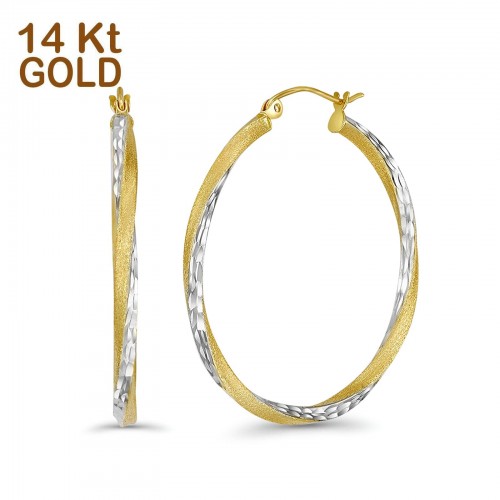 Solid 14K Two Tone Gold 2.6mm Thickness Hinged Hoop Earrings(35mm Diameter)