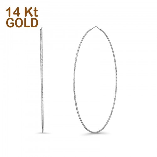 Solid 14K White Gold 1mm Thickness Endless Hoop Earrings(80mm Diameter)