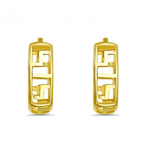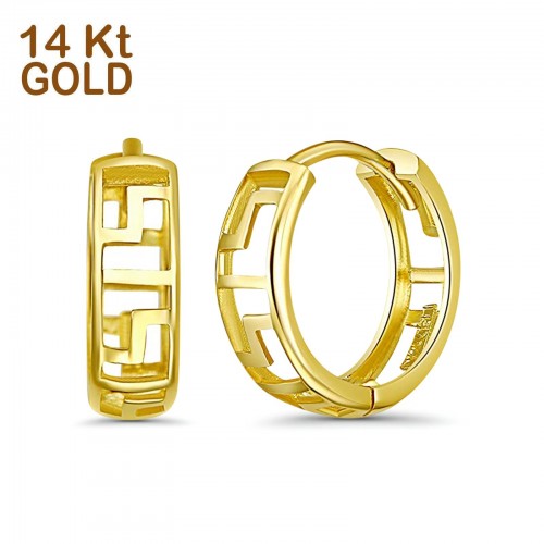 Solid 14K Yellow Gold 4mm Thickness Hoop Earrings Best Anniversary Birthday Gift for Her Greek Key