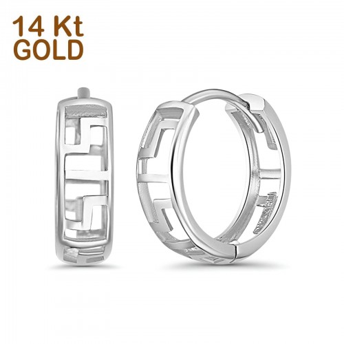 Solid 14K White Gold 4mm Thickness Hoop Earrings Best Anniversary Birthday Gift for Her Greek Key