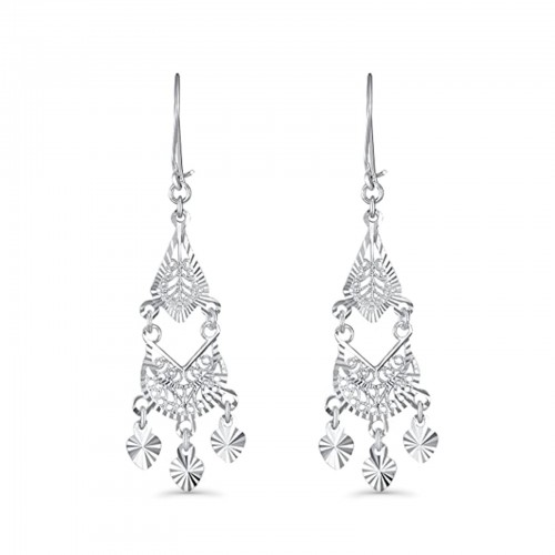 Solid 14K White Gold Fancy Chandelier Dangle Earrings (37mm Diameter)