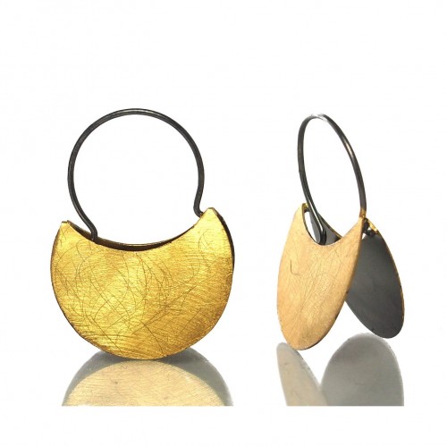 Gold Vermeil over Sterling Silver Two Toned “Fulani Style” Brushed Earrings