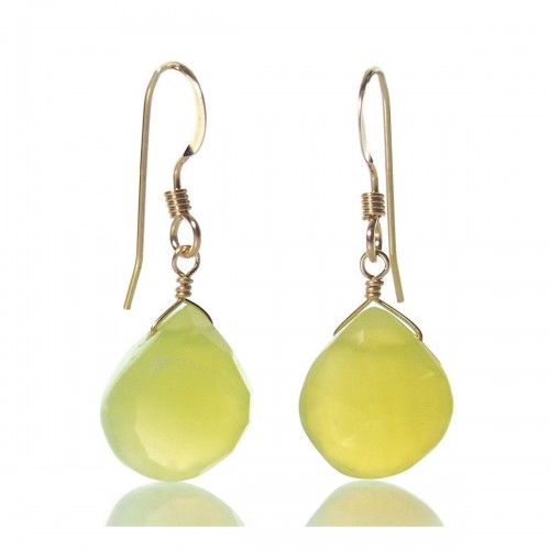 Green Apple Chalcedony Earrings with Gold Filled French Earwires