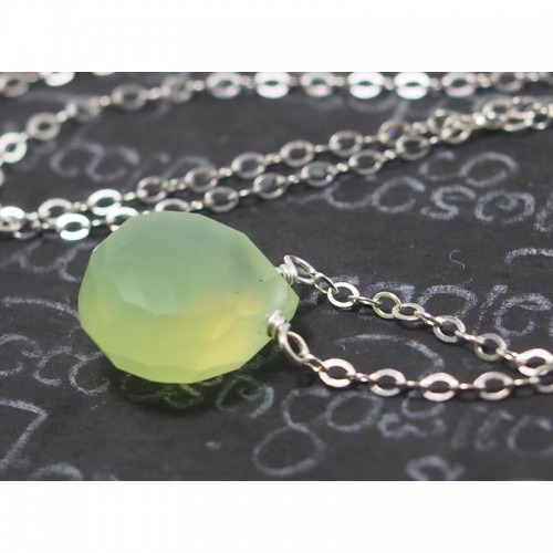 Green Apple Chalcedony Necklace On Sterling Silver Chain With Sterling Silver Lobster Claw Clasp