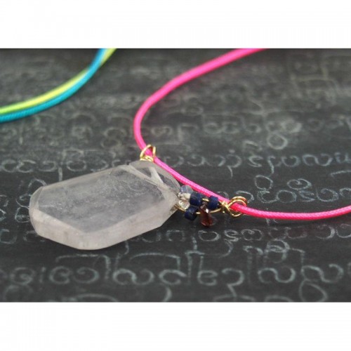 Neon Rainbow Necklace With Rose Quartz Bead With Magnetic Clasp