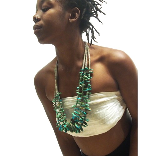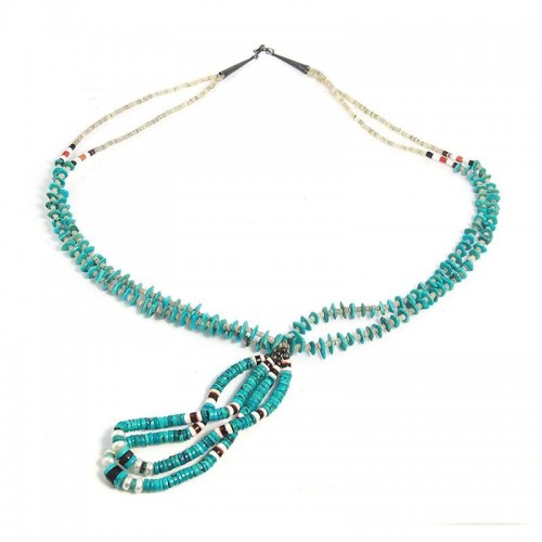 Native American Inspired Turquoise and Shell Three Strand Necklace