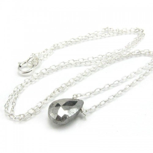 Pyrite Necklace on Sterling Silver Chain with Sterling Silver Spring Ring Clasp