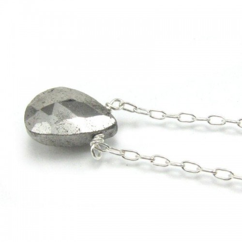 Pyrite Necklace on Sterling Silver Chain with Sterling Silver Spring Ring Clasp