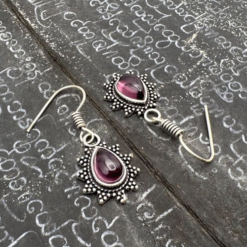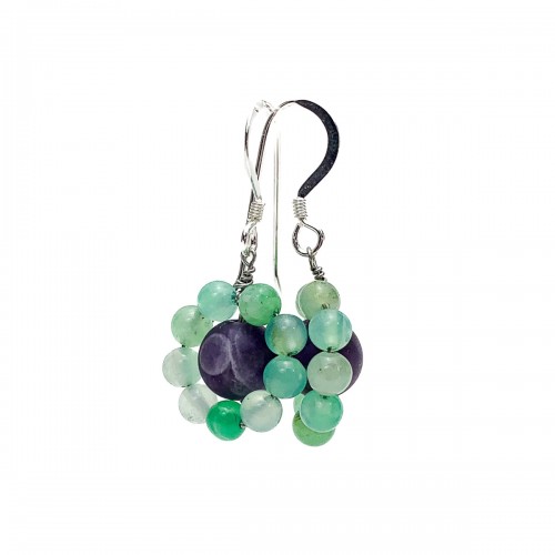 Amethyst & Chrysoprase Flower Earrings with Sterling Silver Ear Wires
