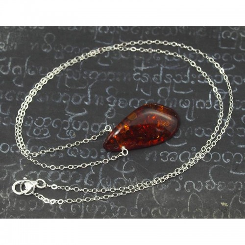 Amber Necklace On Sterling Silver Chain With Sterling Silver Trigger Clasp
