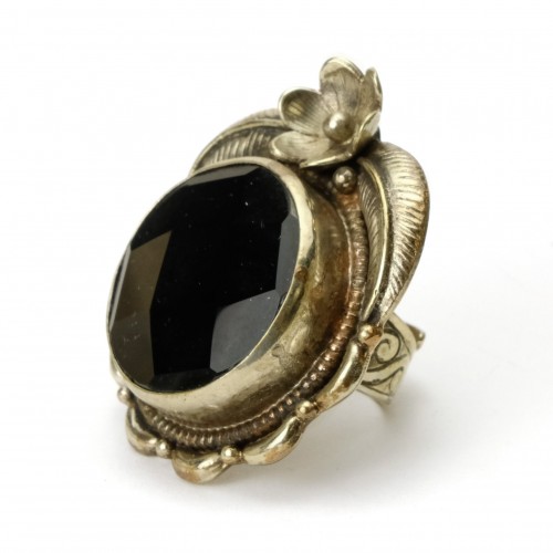 Black Onyx Faceted Cabochon Sterling Silver Adjustable Ring Large