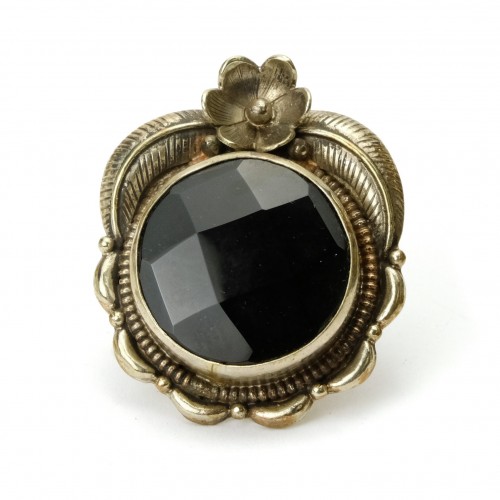 Black Onyx Faceted Cabochon Sterling Silver Adjustable Ring Large