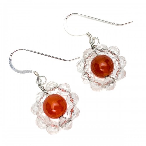 Carnelian & Quartz Flower Earrings with Sterling Silver Ear Wires