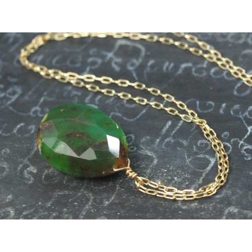 Chrysoprase Necklace On Gold Filled Chain With Gold Filled Spring Clasp