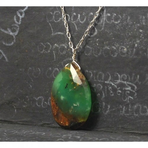Chrysoprase Necklace On Sterling Silver Chain With Sterling Silver Spring Clasp