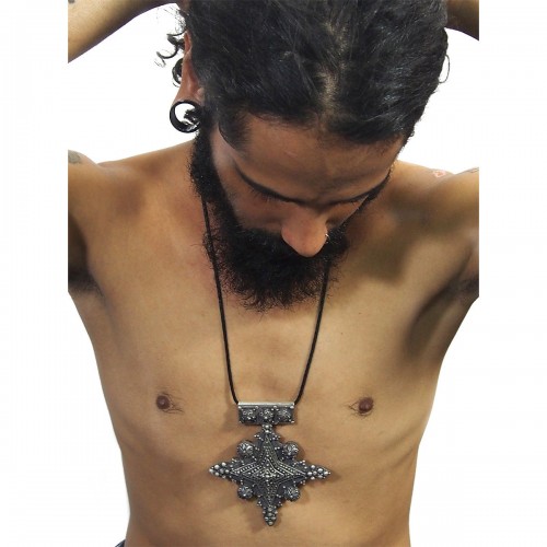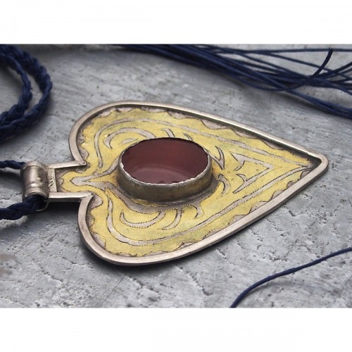 Rare Louha Hamsa Pendant with Blossoming Flowers and Magic Circles Amulet