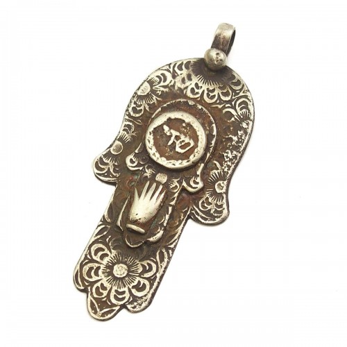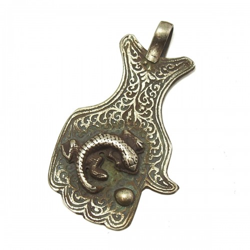 Essaouira Rare Hamsa Pendant with Salamander Protecting an Egg
