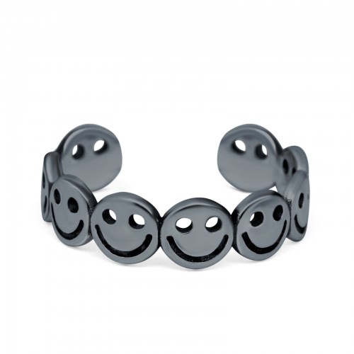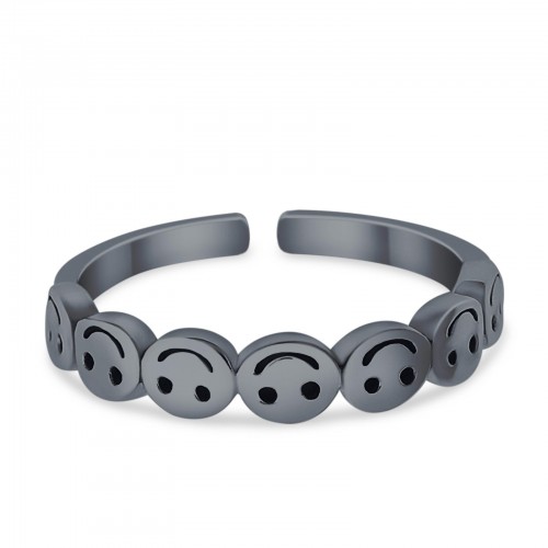 Smiley Face Toe Ring Black Tone Adjustable Band 925 Sterling Silver (4mm)