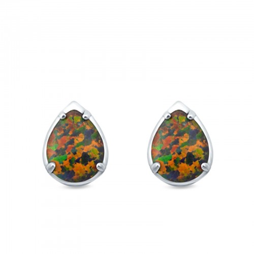 Spiral Swirl Stud Earrings Black Tone, Lab Created White Opal 925 Sterling Silver