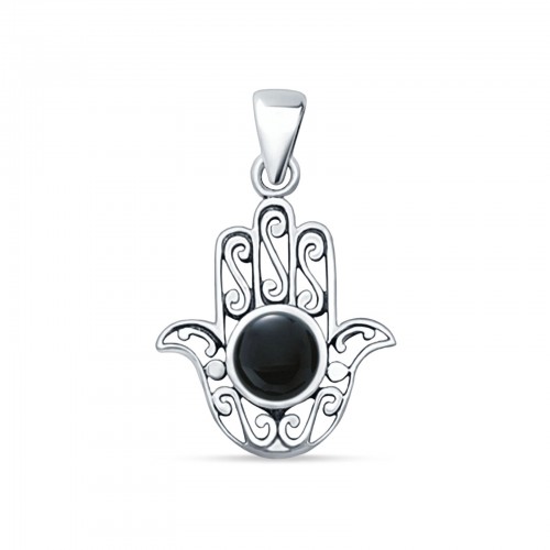 Black Onyx Hand Of Hamsa Pendant Oxidized 925 Sterling Silver