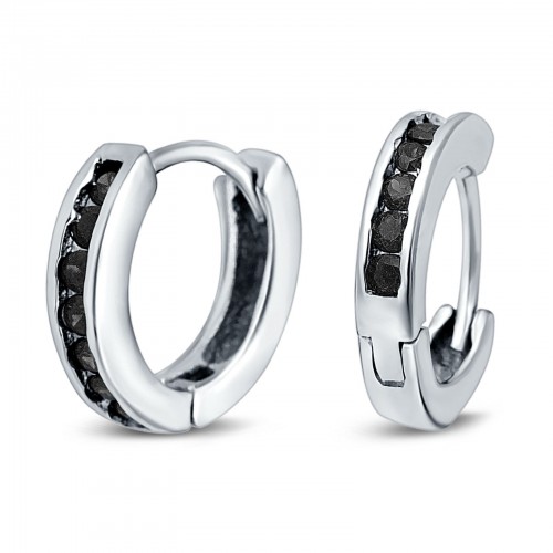 Eternity Huggie Hoop Earrings Channel Round Simulated Black CZ 925 Sterling Silver