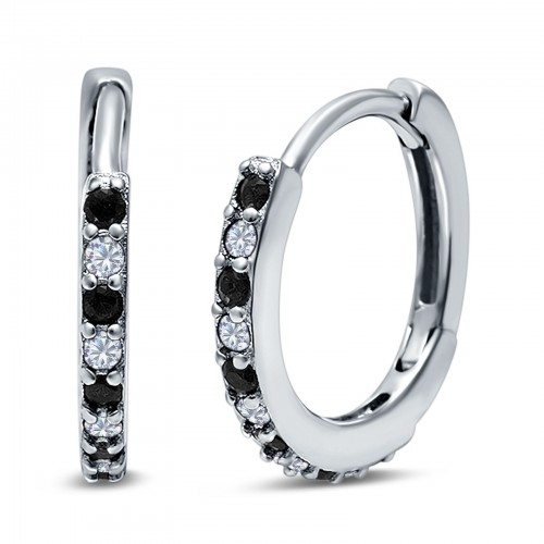 Half Eternity Hoop Earrings Round Black Tone, Simulated CZ 925 Sterling Silver (11mm)