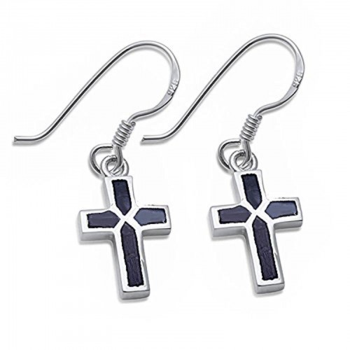 Fish Hook Dangle Drop Earrings Simulated Black Onyx 925 Sterling Silver