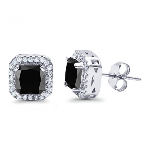 Halo Cushion Bridal Earrings Simulated Black CZ 925 Sterling Silver