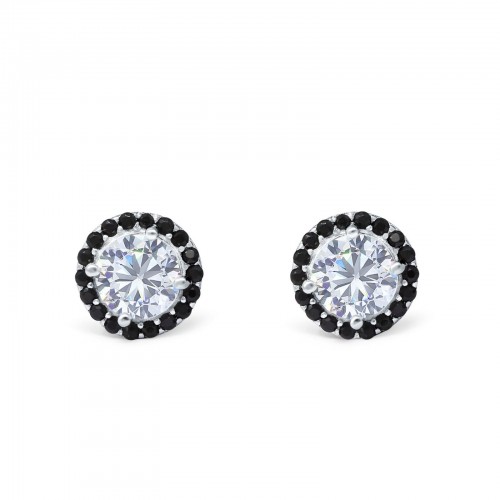 Halo Stud Earrings Simulated Black CZ Round 925 Sterling Silver(8mm)