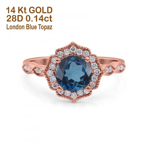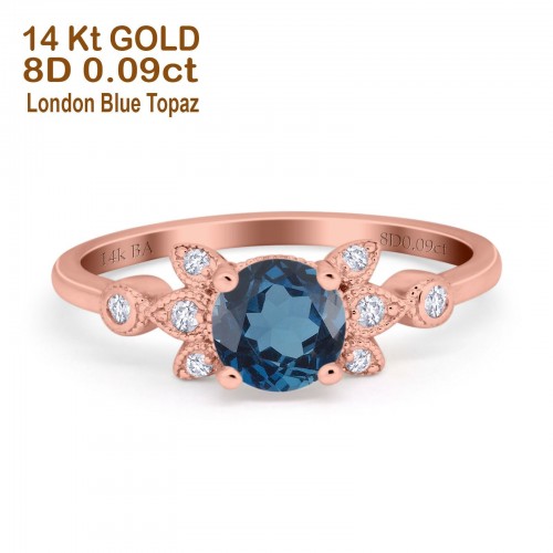 14K Rose Gold 1.37ct Round 7mm G SI London Blue Topaz Diamond Engagement Wedding Ring Size 6.5