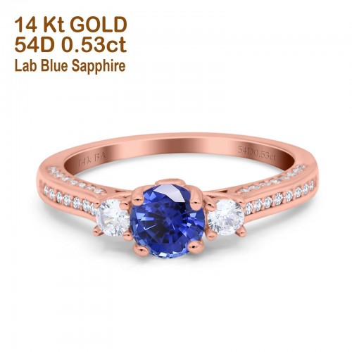 14K Rose Gold 1.37ct Round 7mm G SI Nano Blue Sapphire Diamond Engagement Wedding Ring Size 6.5
