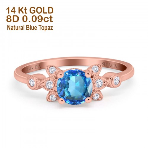 14K Rose Gold 1.37ct Round 7mm G SI Natural Blue Topaz Diamond Engagement Wedding Ring Size 6.5