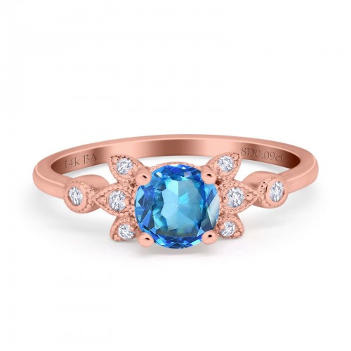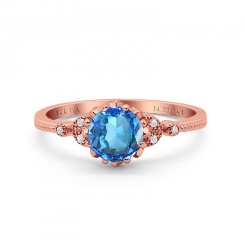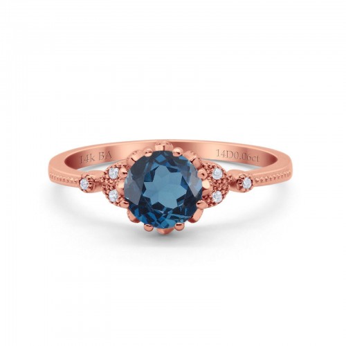 14K Rose Gold 1.37ct Round 7mm G SI Natural Blue Topaz Diamond Engagement Wedding Ring Size 6.5
