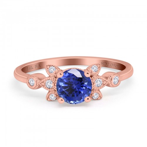 14K Rose Gold 1.37ct Round 7mm G SI Nano Blue Sapphire Diamond Engagement Wedding Ring Size 6.5