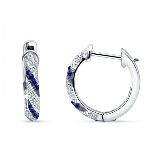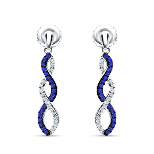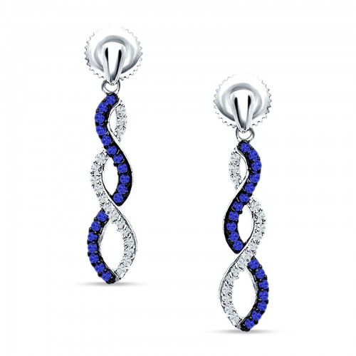 Twisted Infinity Stud Earring Blue Sapphire CZ 925 Sterling Silver Wholesale 23mm
