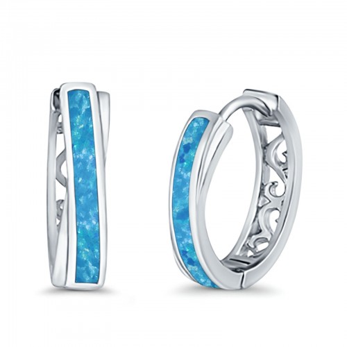 Twist Filigree Hoops Earrings Lab Created Blue Opal 925 Sterling Silver