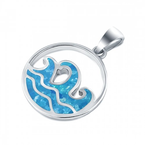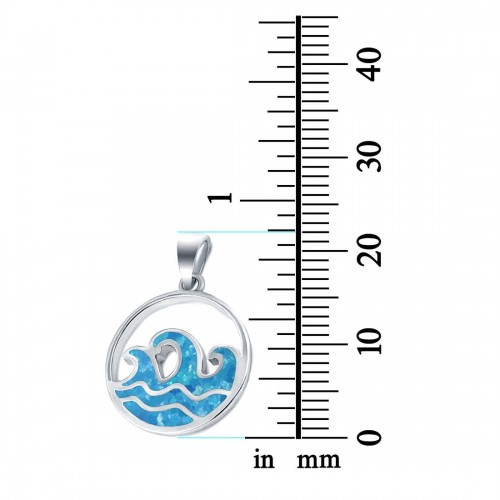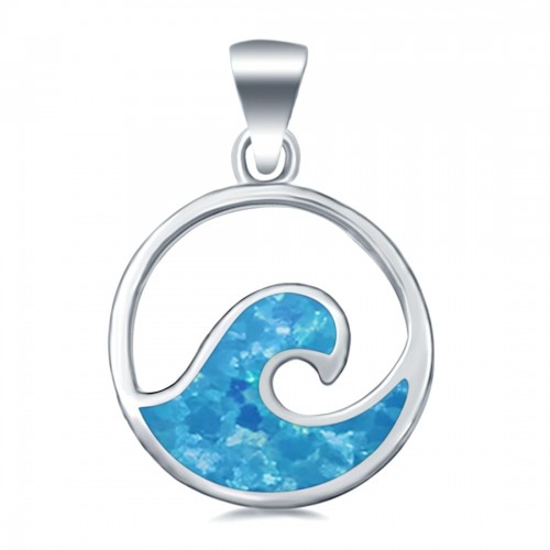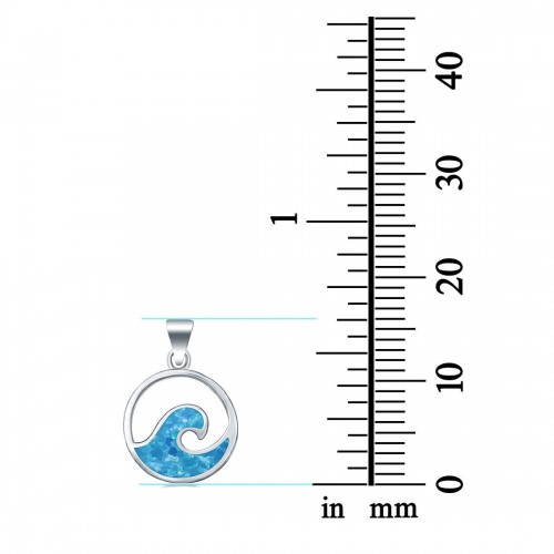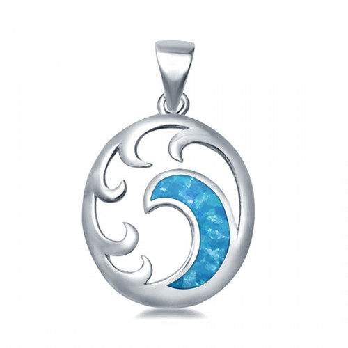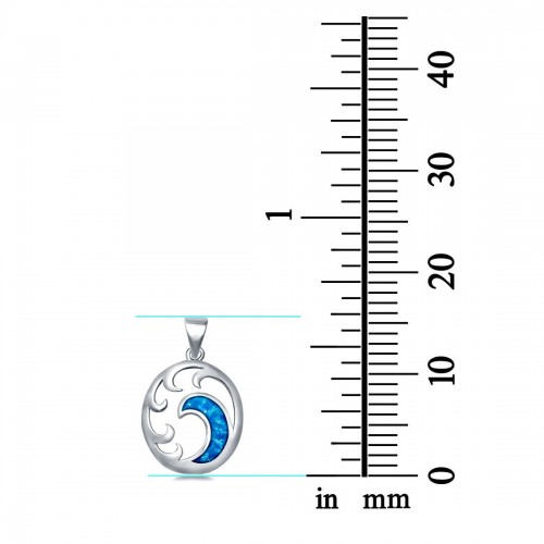 Wave Pendant Trendy Ocean Lab Created Blue Opal 925 Sterling Silver